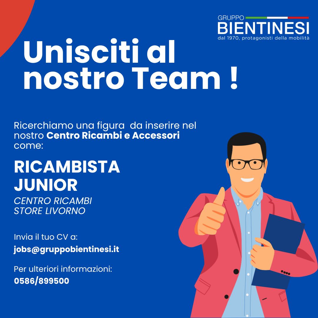 Per potenziare il nostro Centro Assistenza e Ricambi siamo alla ricerca di un Ricambista Junior da inserire nel Centro Ricambi del nostro store di Livorno.